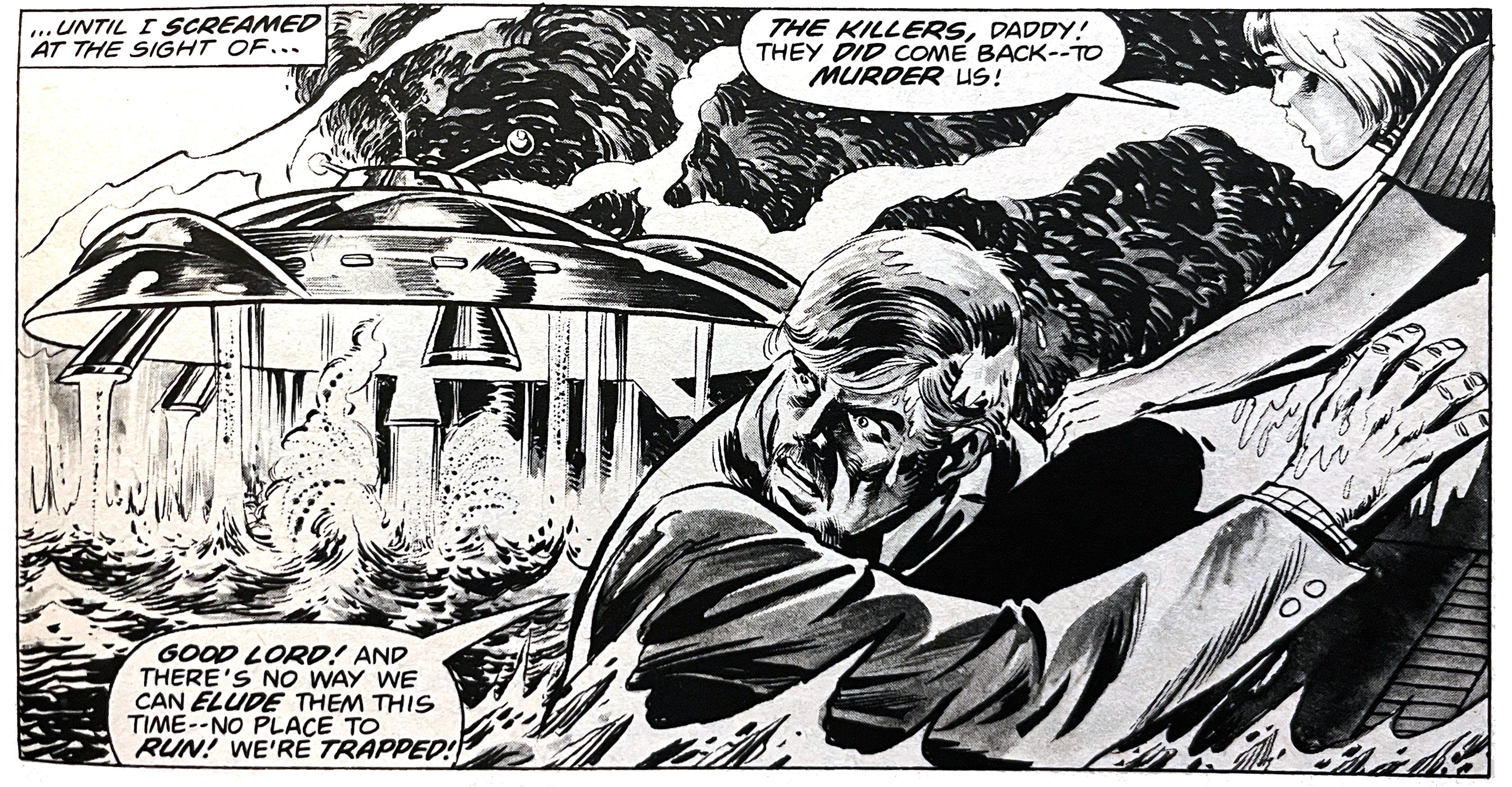That leads into the main feature of this issue of Marvel Preview, a comic book story written by Kraft called “The UFO Connection!” It’s kind of similar to that old TV show The Invaders — earth is being invaded by evil aliens, but no human knows about the invasion except for a scientist and his young daughter. It’s a fairly epic (nearly 40 pages) story that, aside from the secret evil aliens, gets into a few other tropes of the late 1970s, including psychic energies, reincarnation, and Egyptian pyramids. The finale of the story has our protagonists attempting to destroy the Great Pyramid of Giza (!) because it is actually a tool the evil aliens are using to drain the psychic energy of earth’s humans.
